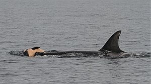 Cet été, l’orque Tahlequah portait le corps inerte de son nouveau-né, pendant 17 jours avant de finalement lâcher prise / ©Center for Whale Research