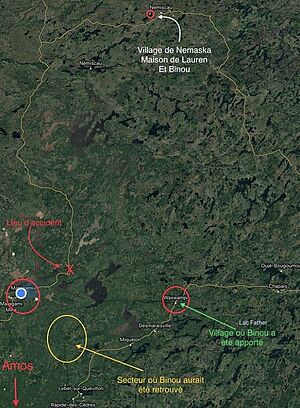 Pendant ce temps, Binou entreprend un long périple au cours duquel il rencontre un autre chien errant. Recueillis par un automobiliste, les deux compères rejoignent la commune de Waswanipi. Hébergé avec son congénère par des enseignants de la ville, Binou est reconnu par des internautes.
