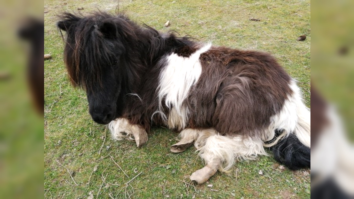 Le poney ne pouvait même plus se lever, tant ses sabots étaient longs. Un manque de soin qui aurait pu lui être fatal ! ©30 Millions d'Amis