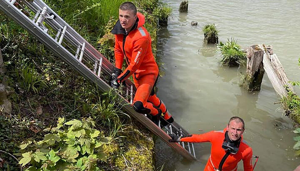 Les plongeurs étaient bien déterminés à secourir le petit félin ! ©SDIS 62