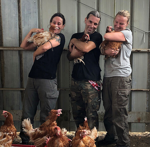 Mais leur forme d’intelligence la plus spectaculaire réside peut-être dans leur exceptionnelle capacité d’adaptation : « Les poules élevées en cages ne connaissent rien de l’humain. Et pourtant, lorsque nous les faisons sortir, il suffit de quelques secondes pour qu’elles se mettent à picorer l’herbe, retrouvant leur instinct, s’émerveille la jeune femme. Elles viennent même manger dans nos mains ! Et au bout de deux ou trois jours, elles ont le même comportement que les autres. » Une résilience fascinante pour ces volatiles qui n’ont connu qu’un environnement fermé, sous une lumière artificielle – jusqu’à 20 heures d’éclairement par jour ! – et sélectionnés afin de maximiser les pontes.