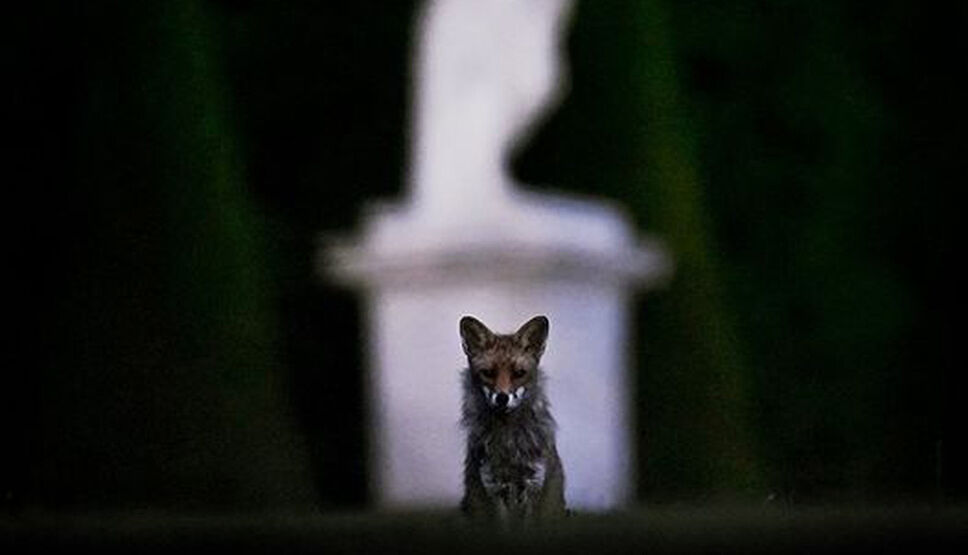 Puis, au beau milieu de la nuit, lorsque le silence renaît, le château dévoile ses « fantômes » qui apparaissent et disparaissent dans les allées : les renards ! Cette nuit-là, le photographe suivait discrètement un jeune goupil : « Il m’avait vu et accepté, il marchait et s’est arrêté, se souvient Jérémie. Son ombre est alors apparue dans la lumière de la statue ». Un cliché magique, presque mystique !