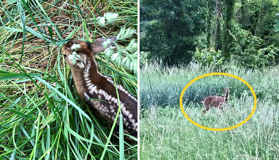 Dans la plupart des cas, un faon caché dans des hautes herbes n’est pas en danger. Il attend simplement le retour de sa mère, partie à la recherche de nourriture ou à l’abri d’un danger (parfois la présence de l’humain lui-même). Mais la chevrette ou la biche reviendra, dès que possible, auprès de son petit.
