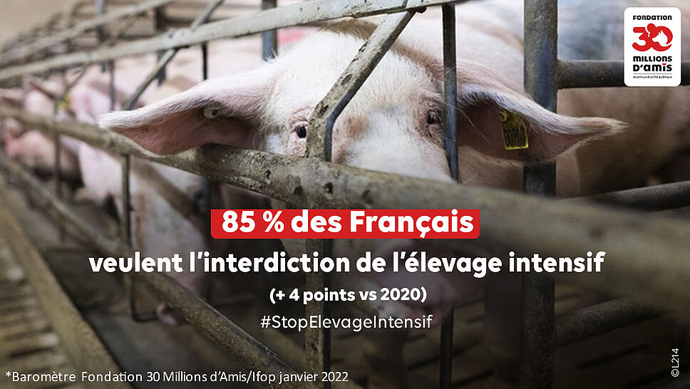 « Enquêtes après enquêtes, les Français montrent qu’ils sont de plus en plus mobilisés pour la protection des animaux, conclut Reha Hutin, Présidente de la Fondation 30 Millions d’Amis. En mettant le bien-être animal parmi leurs préoccupations majeures, eux-aussi demandent aux pouvoirs publics de mettre en place des mesures ambitieuses et concrètes en la matière. » Les citoyens sont invités à se mobiliser en signant la pétition « Ouvrons les yeux sur les cages ».