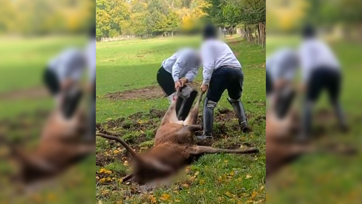 C’est l’association AVA (Abolissons la Vénerie Aujourd’hui) Chantilly qui a diffusé la scène, filmée par des témoins choqués. « L’équipage La Futaie des Amis sème encore une fois le chaos, fustige l’organisation. Pendant leur traque d’un cerf, la meute prend soudain en chasse un autre cerf qui n’a que trois pattes. » Déjà lourdement handicapé, le pauvre animal apeuré a tenté tant bien que mal de fuir. Renversant plusieurs chiens dans la panique, il a sauté un grillage pour se réfugier derrière une maison où il sera finalement rattrapé… et abattu d’un coup de fusil