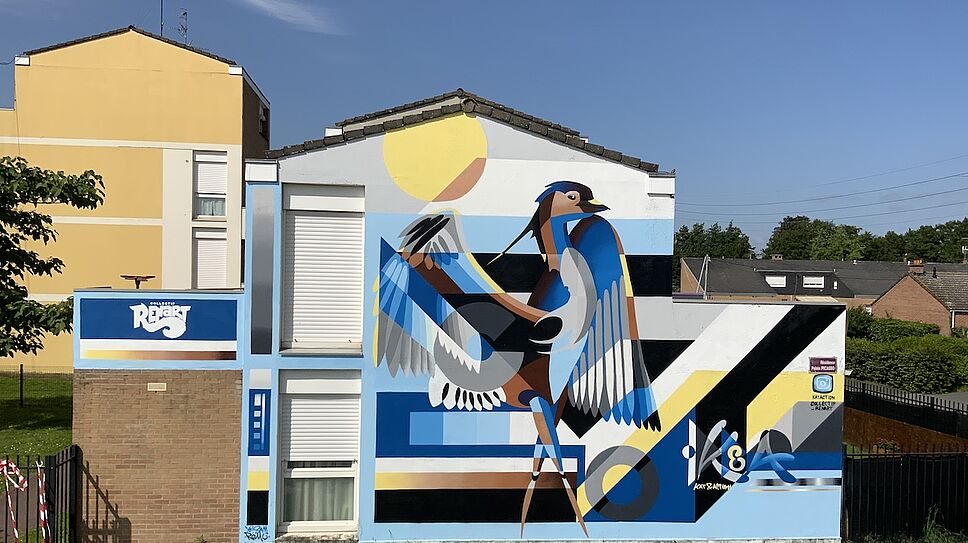 Regarder la nature près de chez soi. Tel est – en substance – le message véhiculé par ce magnifique cerf coloré de Saint-Quentin (02) ou cet hibou éclatant à Vesoul (70). Ces œuvres d’animaux sortent de l’imaginaire d’un duo de Chambéry (Savoie) : Katia et Action. Le couple a fusionné ses compétences pour ne faire plus qu’un, Kat & Action. Leur spécialité : des peintures géométriques et colorées sur des murs ou des toiles.