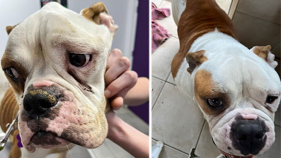 Lors de leur sauvetage, il y a quelques semaines, le même vétérinaire avait dressé un rapport sans appel : Sookie présentait un « score corporel de 2/9 », des oreilles avec « de multiples lésions compatibles avec des morsures ou autres traumatismes » et une « lésion assez profonde à l’extrémité de la queue ». Quant à Nala, son score corporel ne dépassait pas 1/9, le score d’un animal cachectique ! Le bouledogue américain de 5 ans était « fortement déshydraté » avec un « pli de peau persistant et des muqueuses sèches », « de multiples plaies cutanées aux zones de contact avec le sol » dont « une escarre profond surinfecté au niveau du carpe droit et deux hernies abdominales ».