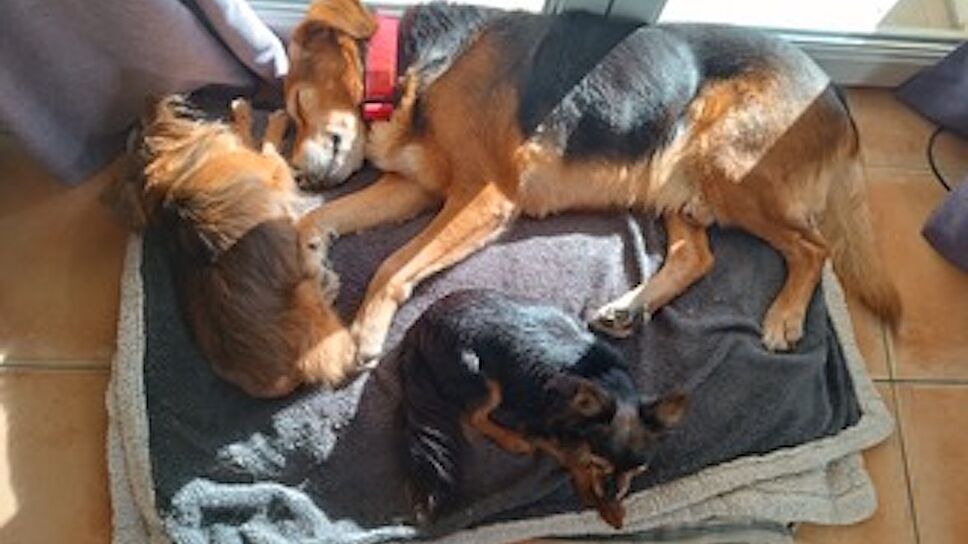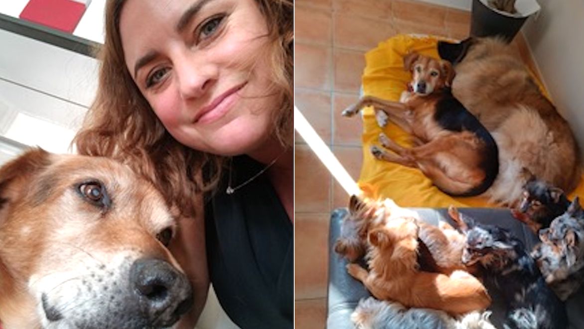 « Je me suis déplacée au refuge pour une petite femelle cancéreuse, se souvient Claire, habitante de Mèze (34). Mais la chienne avait déjà été adoptée. Et non loin du box qu’elle occupait, il y avait un autre chien qui attendait : Chokemba ! Lors d’une 2ème visite, je l’ai pris avec moi. Je n’avais qu’une envie, qu’il finisse sa vie au chaud. » L’histoire d’amour entre Claire et les chiens en souffrance ne date pas d’hier, l’adoptante a déjà accueilli un doyen chez elle et prend soin également de… 7 autres toutous issus de sauvetages !