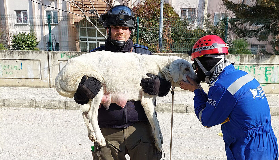 Dès le premier jour suivant le drame, Haytap a mis en place, à Antakya, un hôpital vétérinaire pour soigner les animaux rescapés. Elle a également organisé la coordination des bénévoles et secouristes venus des quatre coins de la planète pour chercher et extraire des décombres les animaux survivants.