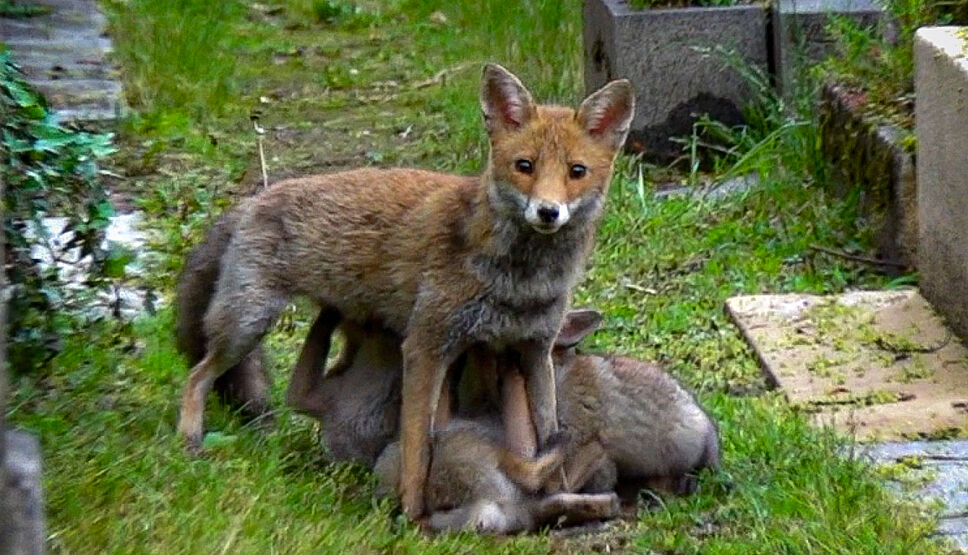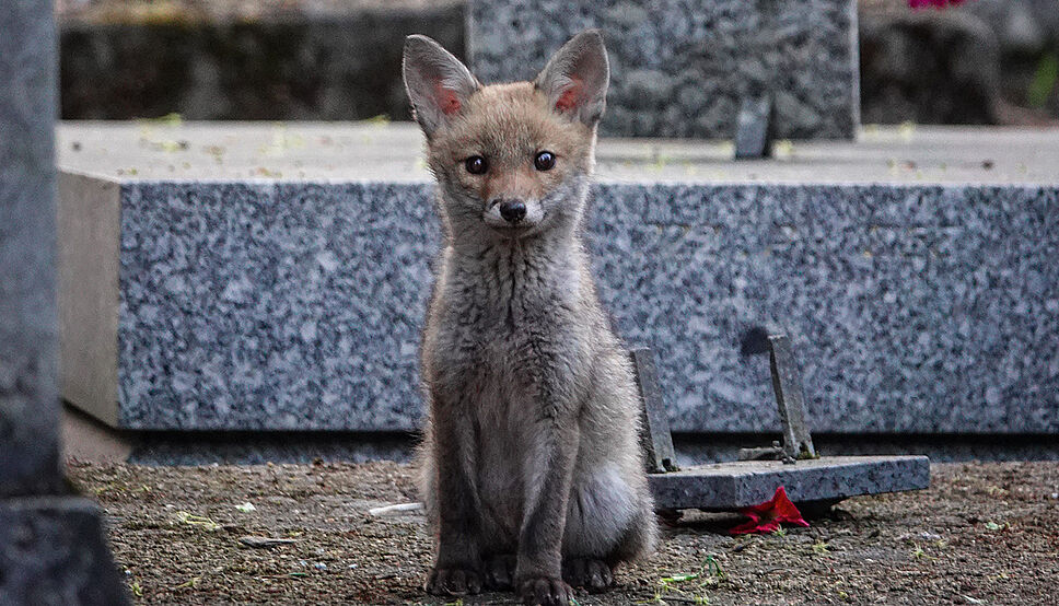 Entre les sépultures des personnages illustres qui reposent au Père Lachaise, à Paris (XXème arrondissement), déambulent des animaux sauvages, divers et variés : des passereaux et perruches, des hérisson et fouines, mais aussi… des renards !