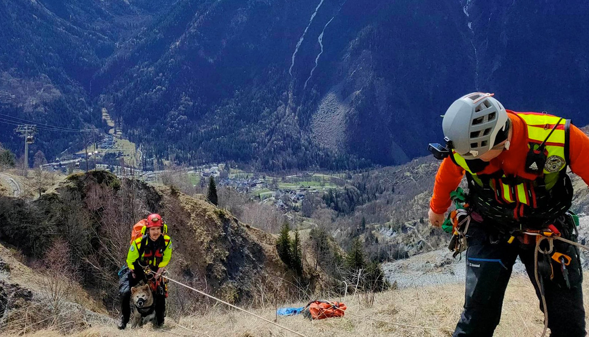 Le plus souvent, les bénévoles viennent en aide à des chiens, chèvres, moutons ou vaches coincés dans des endroits escarpés, difficiles d’accès pour leurs maîtres ou leurs bergers. Ce fut le cas d’Hatchi, un Akita d’un an, qui a chuté dans un ruisseau lors d’une randonnée, au printemps 2023. « Après une heure de recherches infructueuses dans le brouillard, nous avons pu localiser précisément les aboiements, confie l’ESAM. Quand le brouillard s’est enfin levé, on a aperçu Hatchi sur le lieu de sa chute. Une heure plus tard, il a pu être sécurisé et remonté auprès de ses maîtres. »