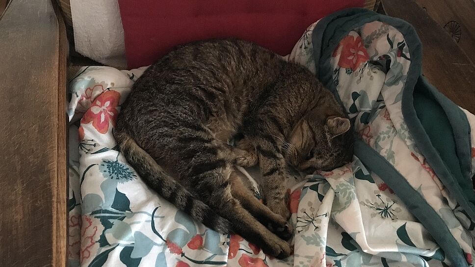 La chatte de 14 ans, qui avait pour habitude de vivre dans la rue, ne pouvait plus continuer à subsister dans cet environnement du fait de son âge avancé. Heureusement, elle a trouvé en Geneviève, une maîtresse aimante, et… un nouvel Eden !