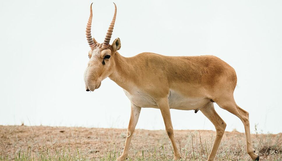 Contrairement à l’oryx algazelle, l’antilope saïga n’a jamais disparu à l’état sauvage. « Sa population connaissait un déclin particulièrement important sur les territoires de Mongolie, en Russie ou encore au Kazakhstan », précise Florian Kirchner. De 2004 à 2015, l’UICN a estimé à 50% le taux de baisse du nombre d’antilopes saïga présentes à l’état sauvage. Durant cette période, plusieurs épidémies ont causé la mort de centaines de milliers d’entre elles. Pour ne rien arranger, le commerce illégal de sa viande et de ses cornes continuent de menacer l’espèce.