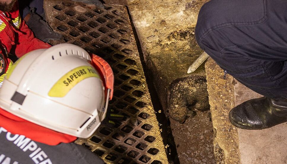Mais les équipes mobilisées se sont heurtés au fait qu’aucune autre canalisation ne menait au jagdterrier. Le regard conduisait uniquement au fleuve. « Il a probablement suivi une bête en tombant dans la Seine et s’est retrouvé à cet endroit », émet Jérôme Cailleau à 30millionsdamis.fr. Face à cette situation, les secours ont appelé en renfort à l’Unité de sauvetage et de recherche (USAR). Grâce une caméra plus longue et un détecteur de métaux, les équipes d’intervention ont finalement décaissé « à la main » le trottoir pour faire sortir le chiot. « C’était un débat technique, puisqu’il fallait éviter tout risque lié au gaz, et à la fibre », précise le lieutenant Cailleau.
