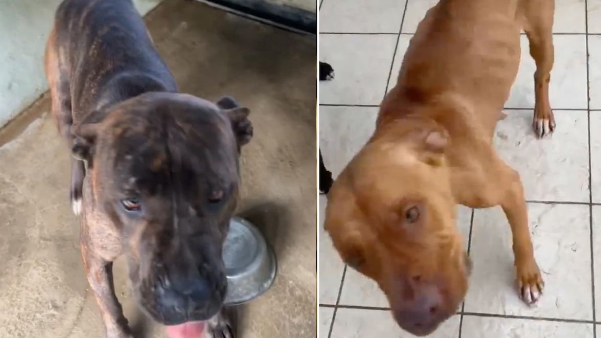 Sauvetage de 2 chiennes squelettiques et attachées au bas d’un escalier