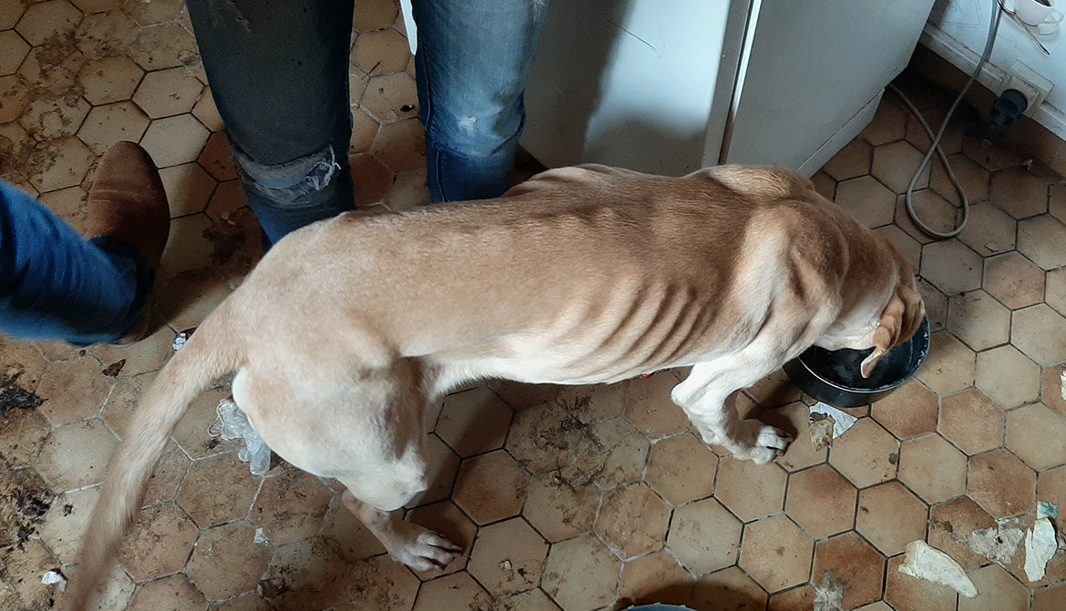 Un labrador cachectique abandonné dans une maison