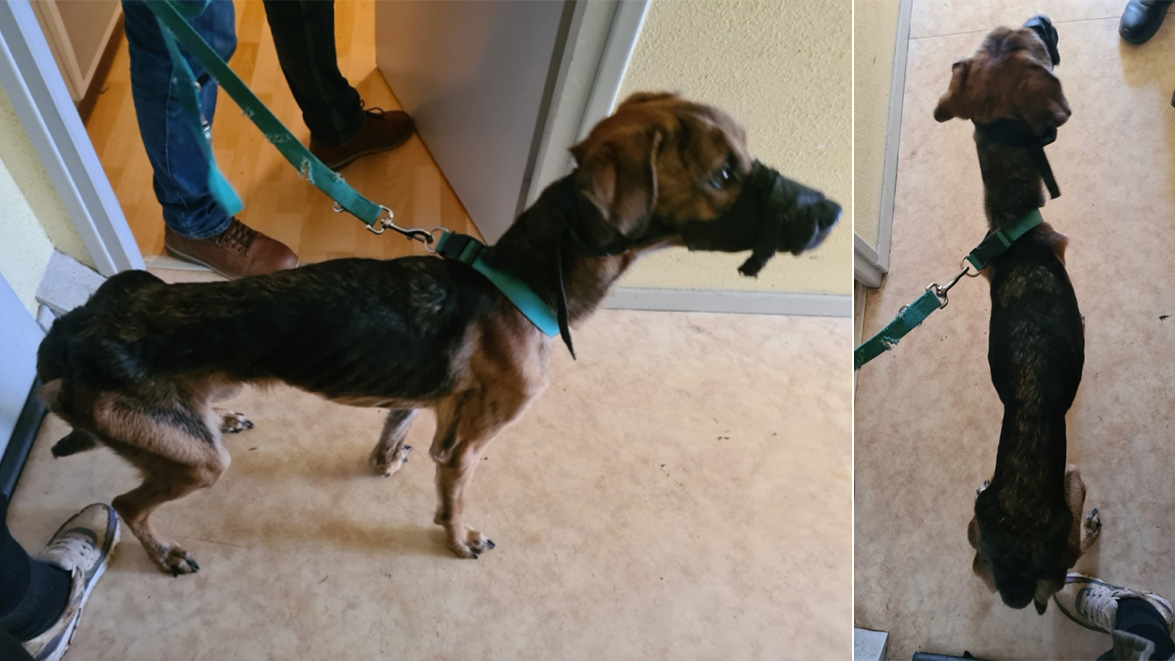 Constamment muselé, ce chien souffrait d’une maigreur extrême !