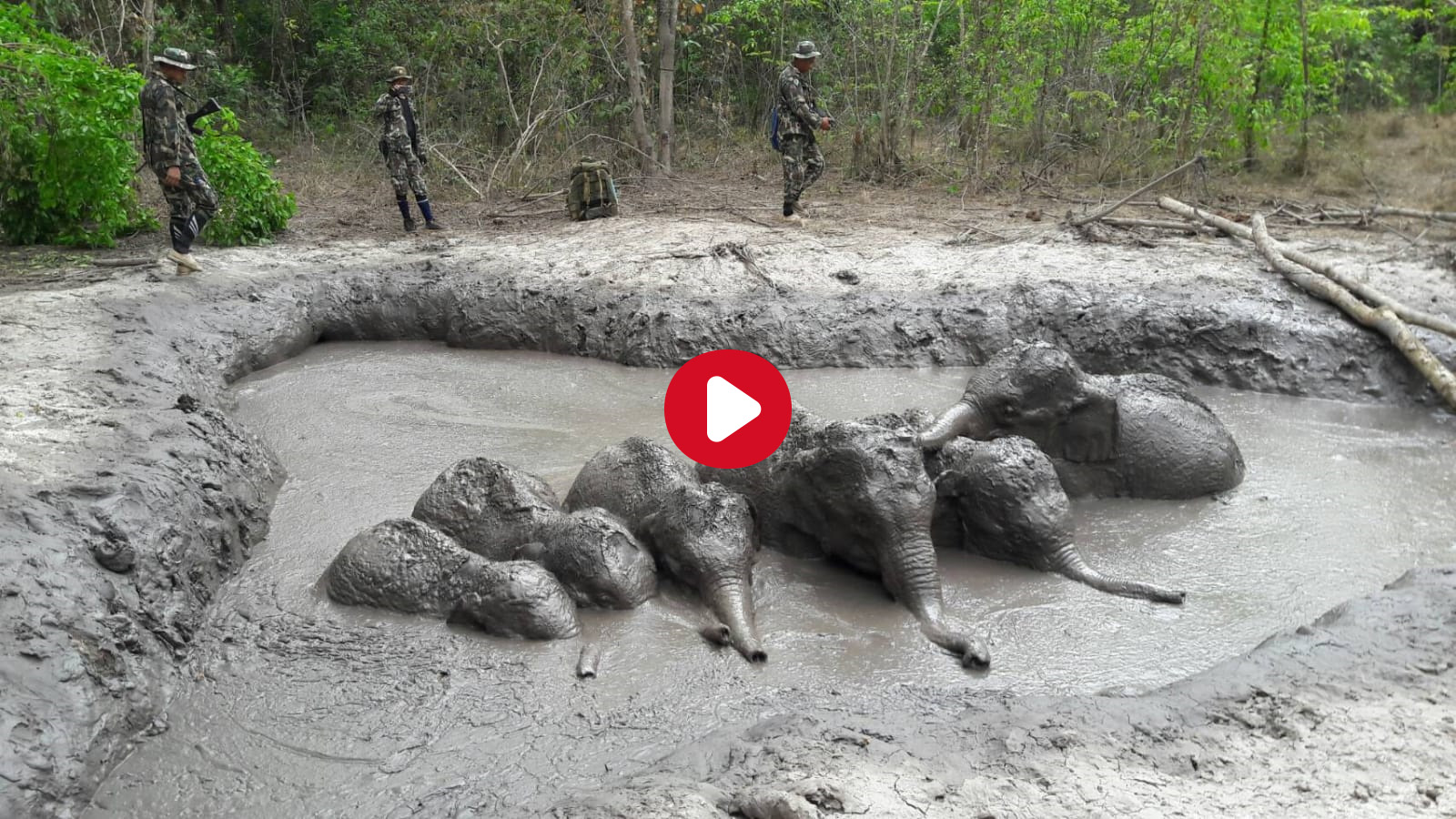 Des éléphanteaux piégés dans la boue ont été sauvés en Thaïlande
