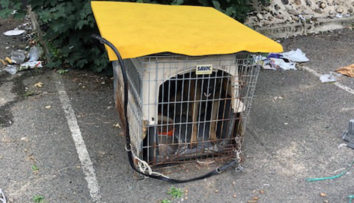Une chienne enfermée dans une cage en plein soleil au Blanc-Mesnil