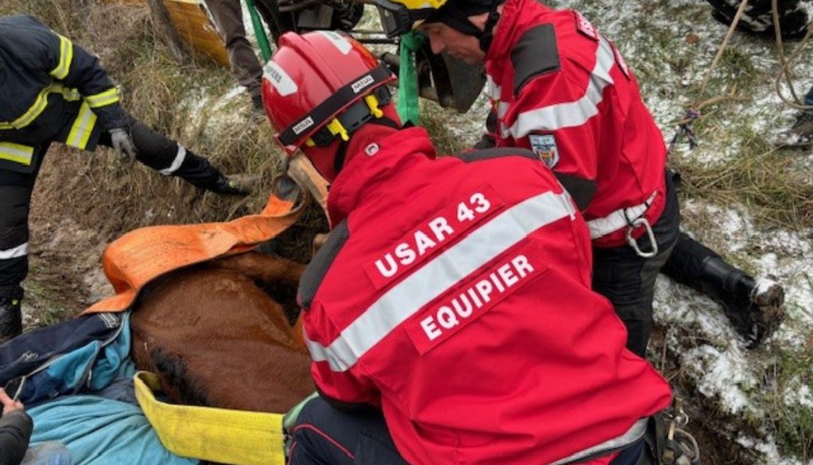 Un sauvetage solidaire pour ce cheval coincé dans un fossé