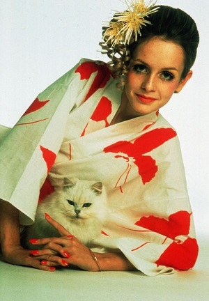 Elle s’appelle Twiggy, en hommage à une mannequin des années 60 qui avait des yeux façon princesse égyptienne [voir l’image ci-contre]. C’est comme ça que nous sommes tombés amoureux de notre chatte, mon épouse et moi, la première fois que nous l’avons vue. Nous l’avons repérée dans la rue, en train de chercher de la nourriture et quand nous avons vu son regard, c’était princesse Néfertiti. Nous l’avons fait venir à la maison, ça lui a plu et elle est restée. Elle a maintenant 7 ans, juste l’âge de raison ! On continue pourtant de l’appeler « bébé chat » parce qu’elle est toute petite et tendre à un point qu’on n’imagine pas ! Elle ne supporte pas qu’on s’en aille… Elle vit avec nous comme une petite sangsue qui est collée à son papa chat et sa maman chat.