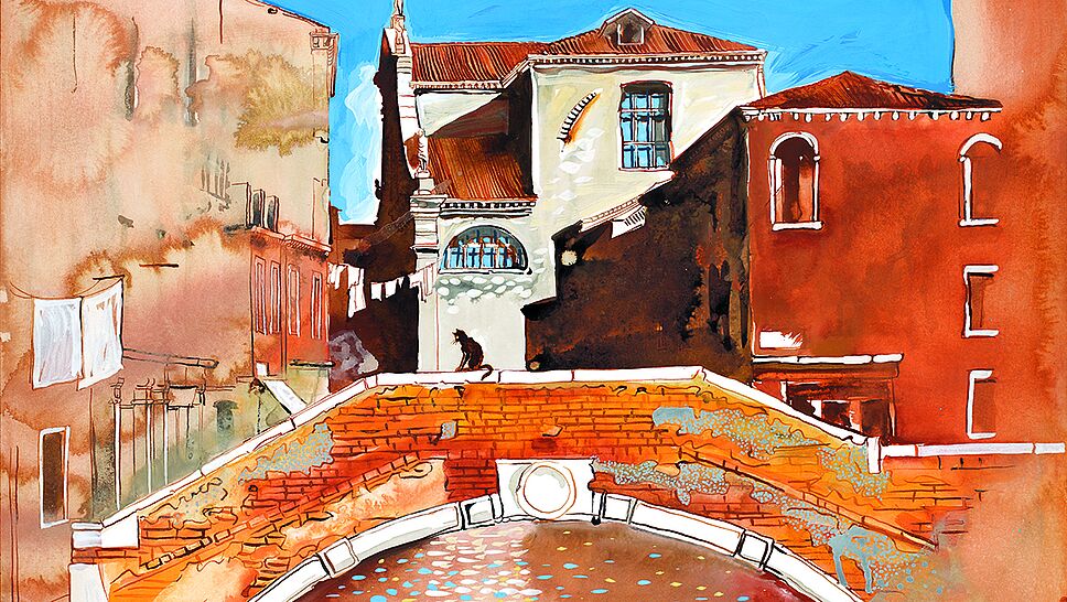 Didier Decoin : Le « père porteur » de ce projet est Nicolas Vial (illustrateur, NDLR). Nous nous sommes retrouvés, il y a un peu plus d’un an dans une signature en commun et il m’a parlé de son idée. Il avait déjà travaillé sur quelques aquarelles sur Venise et les matous et m’a demandé si je les aimais et si ça m’inspirait éventuellement un texte d’accompagnement. Alors comme je suis complètement fou amoureux, malade, dingue des chats, j’ai dit « oui » ! Et comme j’adore la peinture de Nicolas Vial j’ai dit 2 fois « oui » et que Venise est une ville que j’aime beaucoup, j’ai dit 3 fois « oui » !