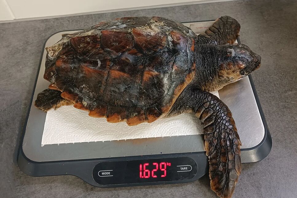 Très jeunes, ces tortues caouannes sont « emportées par les courants » au vu de leur faible poids. D’après la LPO, un individu peut peser « entre 100 et 250 kilos » une fois adulte, alors que les plus jeunes secourues par le CESTM pèsent habituellement « environ 2 à 3 kilos ». « Elles sont de plus en plus petites. Cette année, la plus légère que nous avons recueillie ne pesait que 160g… », se souvient F. Dell’Amico. Fragilisées par les tempêtes, ces juvéniles sont propulsées sur nos plages, « déshydratées » et « étourdies par le froid ». « Elles ont subi des températures très basses, provoquant des lésions sur leur peau et sur leur carapace », ajoute la responsable du CESTM.