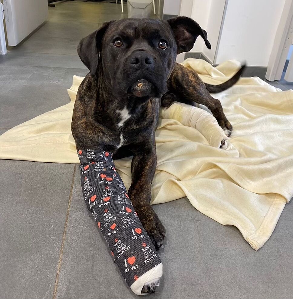 Nestor, un croisé cane corso, est tombé d’un appartement situé au 2ème étage. Cédé à une association dans la Somme, le chien a pu être sauvé et opéré à temps (24/4/2024). La Fondation 30 Millions d’Amis a participé aux frais vétérinaires.