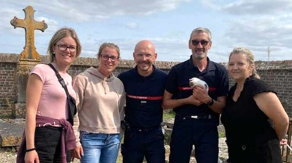 Un sauvetage en grande pompe ! L’émotion et le soulagement prédominaient après le sauvetage rocambolesque d’un chaton tombé dans les profondeurs d’une concession funéraire dans la ville du Plessier-Rozainvillers (18/8/2024).