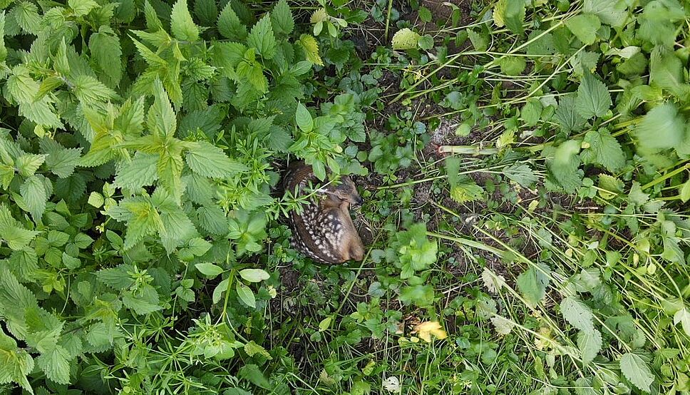 Grâce à la technologie, les faons sont repérés et mis en sécurité avant l’intervention des engins de fauchage. / ©DR