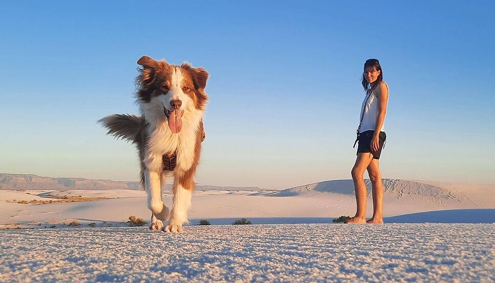 Nana, tout heureuse de courir dans le White Sands National Park, au Nouveau-Mexique (États-Unis). /©Élodie et Nicolas