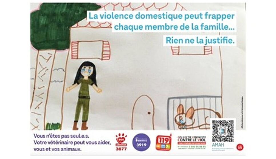 Conçue par la vétérinaire Jessica Dépigny, cette affiche rappelle « qu’un vétérinaire peut être un acteur de protection, pour les animaux comme pour leurs maîtres ». Elle est actuellement visible dans la région lilloise et pourrait être déployée à l’échelle nationale.