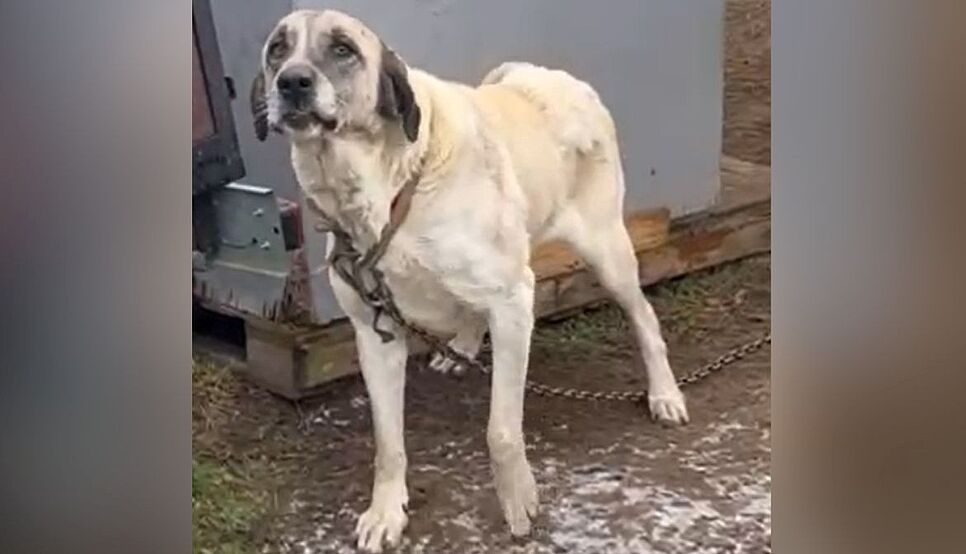 Cette chienne, attachée dehors pendant des années, a été sauvée