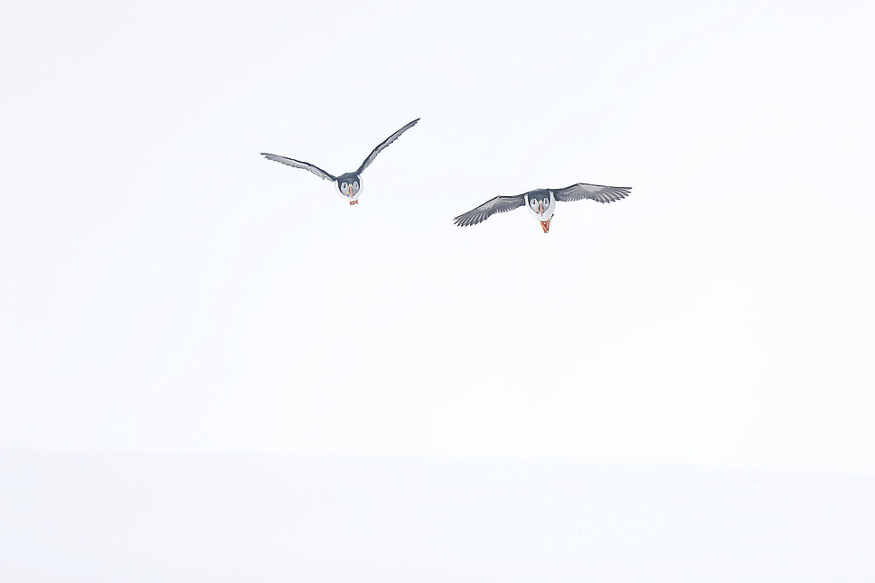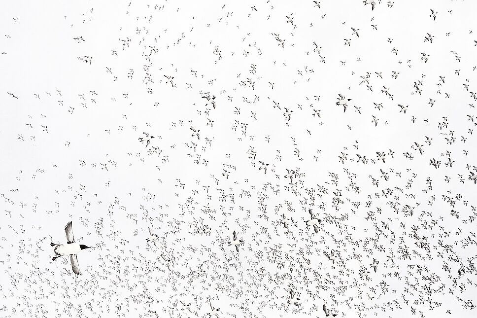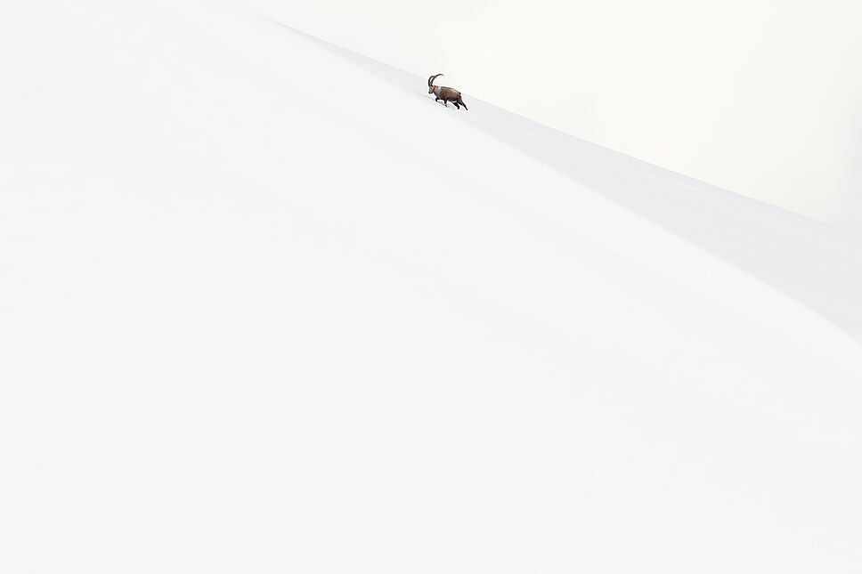 Le jury du prestigieux concours international a sélectionné les œuvres du jeune Français, qui se caractérisent toutes par cette recherche esthétique, à l’instar d’un bouquetin des Alpes en pleine ascension tel un alpiniste ; d’une nuée d’oiseaux marins dont les corps piriformes se fondent dans la clarté du ciel ; ou encore une hermine d’un blanc si immaculé que seuls ses yeux, son museau et la pointe de sa queue se détachent du sol blanc (voir photos). Mais la photo qui a convaincu les professionnels est sans conteste celle de deux mouflons de Dall aux cornes entrelacées, au cœur des montagnes du Yukon (Canada).