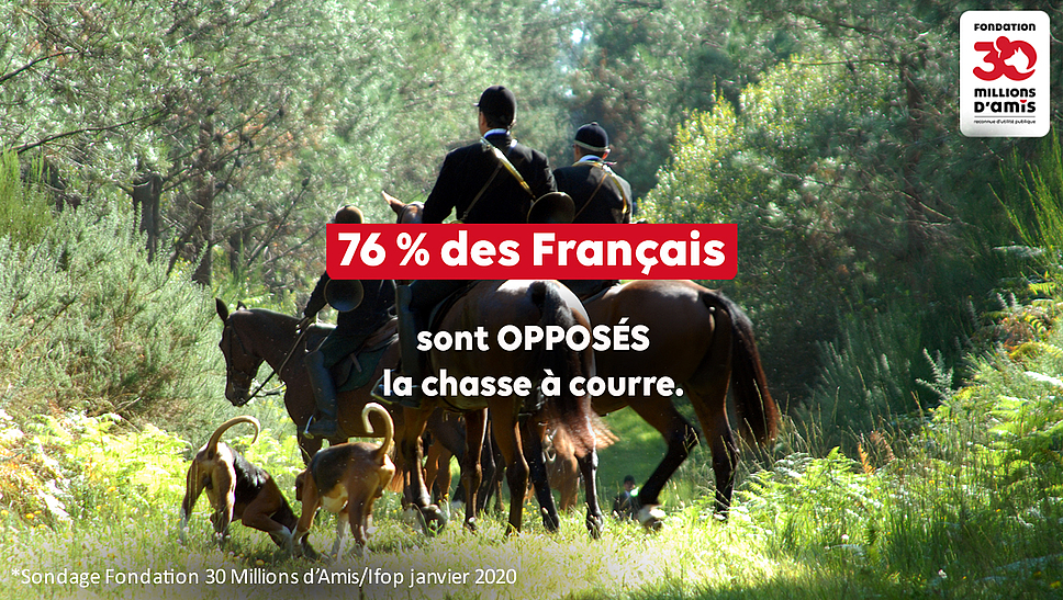 Alors que les Français sont 76% à se prononcer contre la chasse à courre (Baromètre Fondation 30 Millions d’Amis/IFOP – 2020), il est désormais plus que temps que les politiques soient en phase avec les attentes sociétales. D’où certaines réactions fébriles des plus réfractaires !