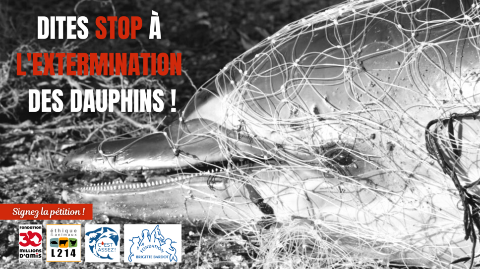 Au large des côtes françaises, près de 10.000 dauphins meurent piégés dans des filets de pêche chaque année, dont un millier de cadavres s’échouent ensuite sur nos plages. Face à ce terrible constat, les mesures proposées par le gouvernement – basées sur le volontariat – sont jugées insuffisantes. Les associations C’est Assez!, L214 et les fondations 30 Millions d’Amis et Brigitte Bardot adressent à la ministre de la Mer une pétition pour interdire temporairement la pêche dans les zones de présence des cétacés. Unique espoir de garantir l’avenir de l’espèce.