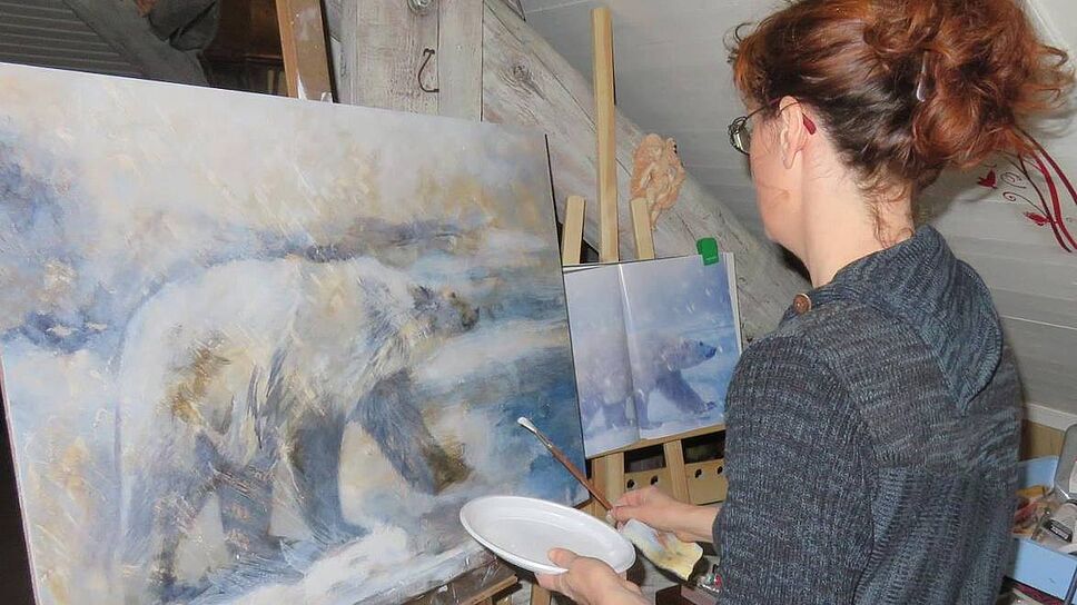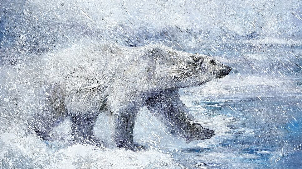 L’ours polaire est l’un de ces animaux en voie de disparition que Carole Merlin apprécie peindre./©C. Merlin
