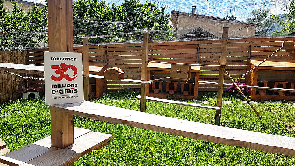 Les pensionnaires de la chatterie du refuge de Gap (Hautes-Alpes) bénéficient depuis juin 2021 d’un parcours extérieur ; ils peuvent désormais gambader sur l’herbe fraîche et explorer à leur guise des modules et plateformes en bois. Un parc intégralement financé par la Fondation 30 Millions d’Amis.