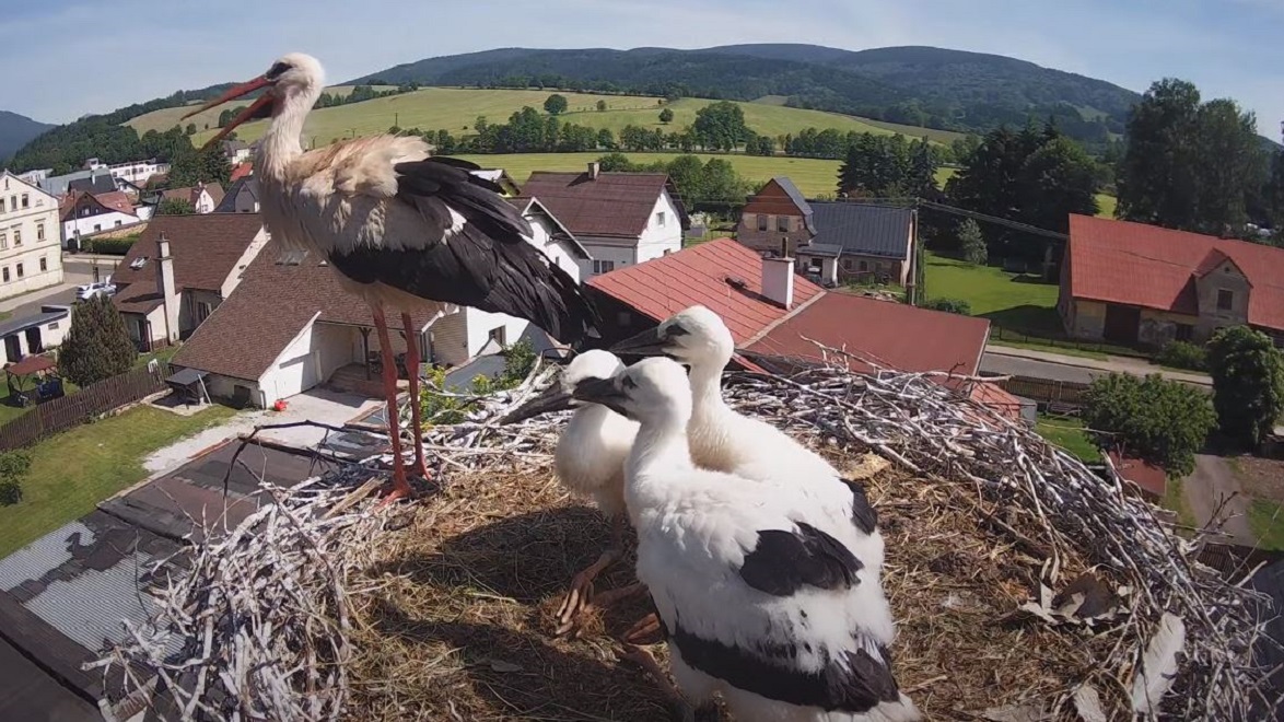 Situé à 150 kilomètres de la capitale Prague, ce petit territoire de quelque 2000 âmes a en effet accueilli une famille de cigognes qui s’est posée sur une cheminée à plusieurs mètres de hauteur. Une caméra avait alors été installée afin d’observer les animaux, avant la mort dramatique de la mère.