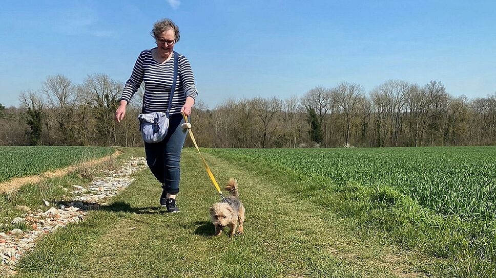 Avec Sylvie, Pinky peut s’adonner à sa passion première : la promenade./DR