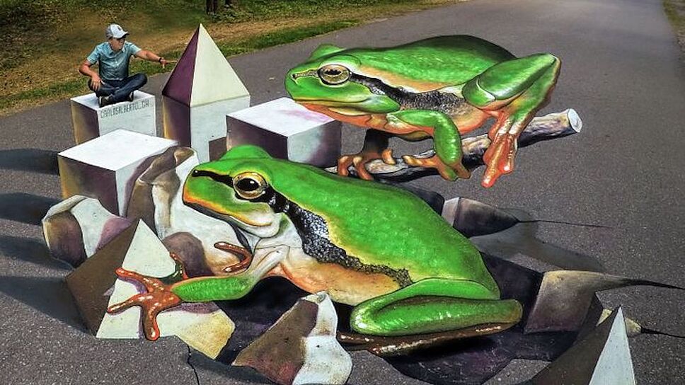 Une ode à la nature en plein milieu urbain ! Entre le perroquet s’extirpant d’un mur et la baleine flottant sur le bitume en passant par les grenouilles traversant la route, les œuvres en trompe l’œil de Carlos Alberto ont de quoi émerveiller les passants par leur grandeur et leur beauté.