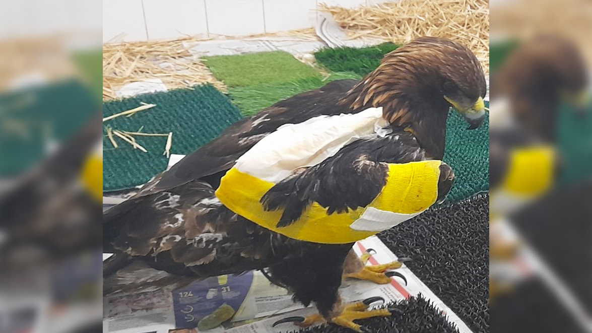 Victime d'un tir de plomb, un aigle royal a été gravement blessé à l'humérus et aux yeux. ©Le Tichodrome