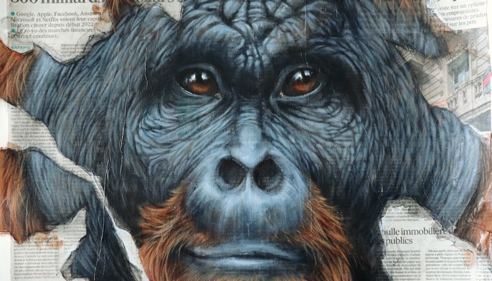 Du zèbre brisé en morceaux de verre à l’orang-outan s’effaçant dans du papier journal en passant par le requin s’évaporant sur une toile, les œuvres de l’artiste transmettent un message fort : la biodiversité s’effondre.