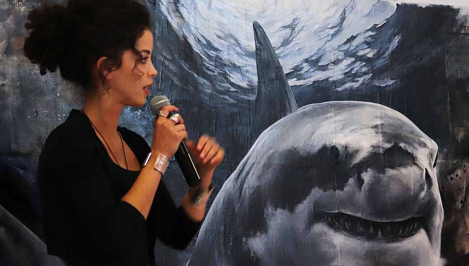 Anagruz a également peint le requin, animal qui a longtemps pâti de sa réputation d’antagoniste à l’humain./©Anagruz