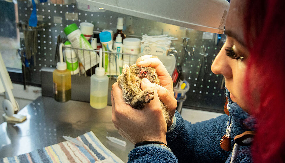 Blessé à l'œil par un outil de jardinage, ce lapin a pu être secouru par un centre de soins. ©Hegalaldia