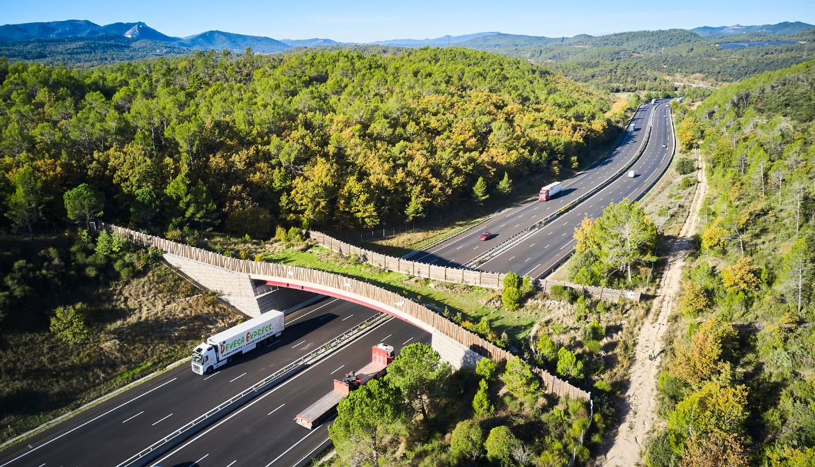 Pour protéger la biodiversité et permettre à la faune sauvage de traverser le ruban de circulation, la réglementation prévoit un écopont tous les 300m environ pour les autoroutes les plus récentes / ©PhotothèqueVINCIAutoroutes