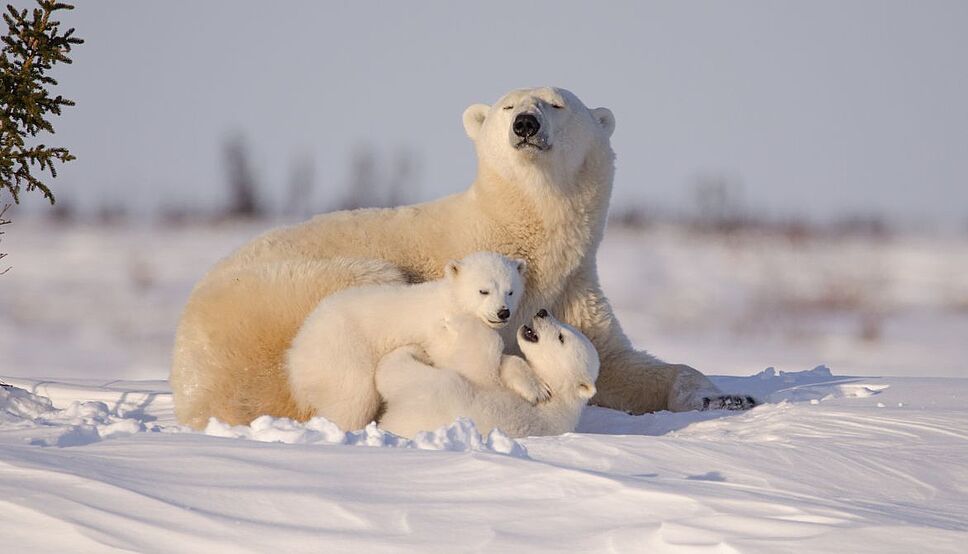 L’ours polaire femelle donne naissance jusqu’à trois oursons en hiver. Ces derniers dépendent du lait de leur mère jusqu’à l’âge de deux ans / ©AdobeStock
