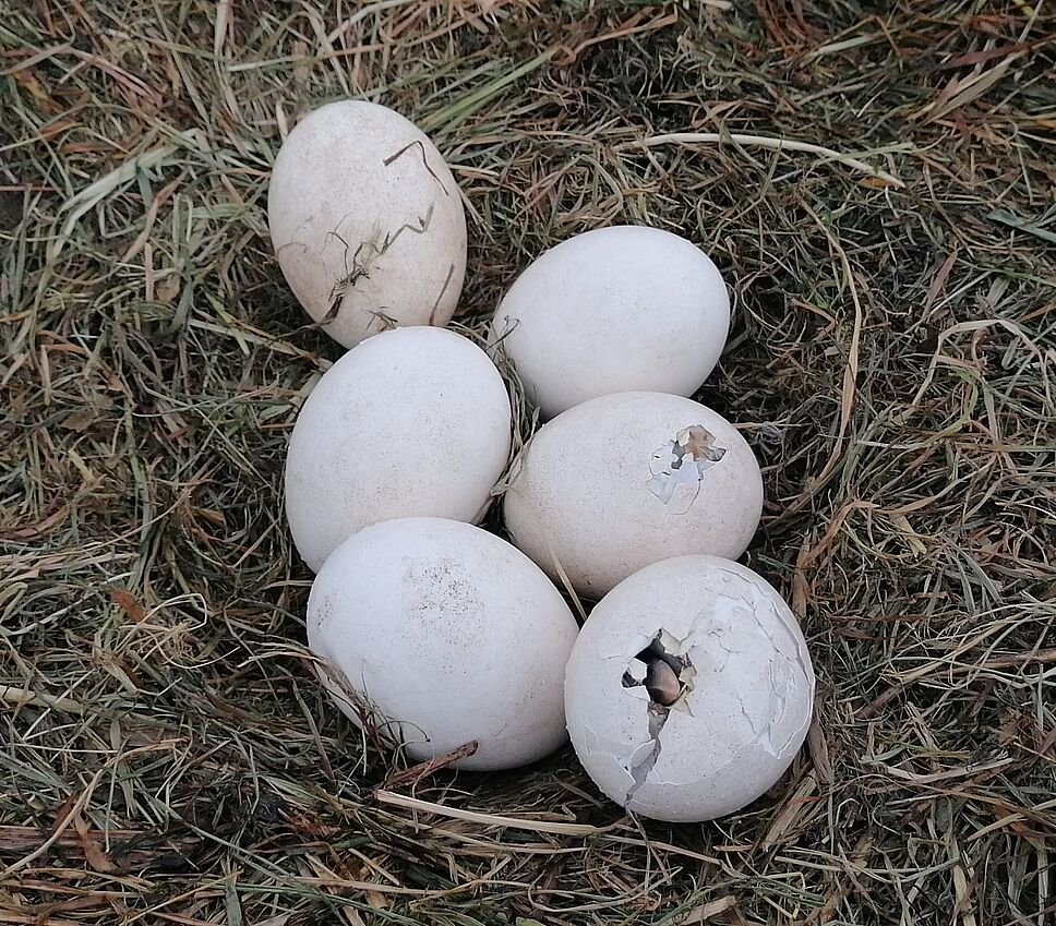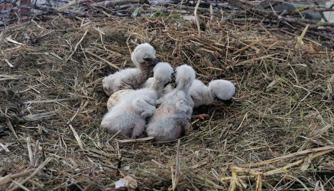 Les premiers cigogneaux qui percent, petit à petit, la coque de l’oeuf. /© Dominique Klein
