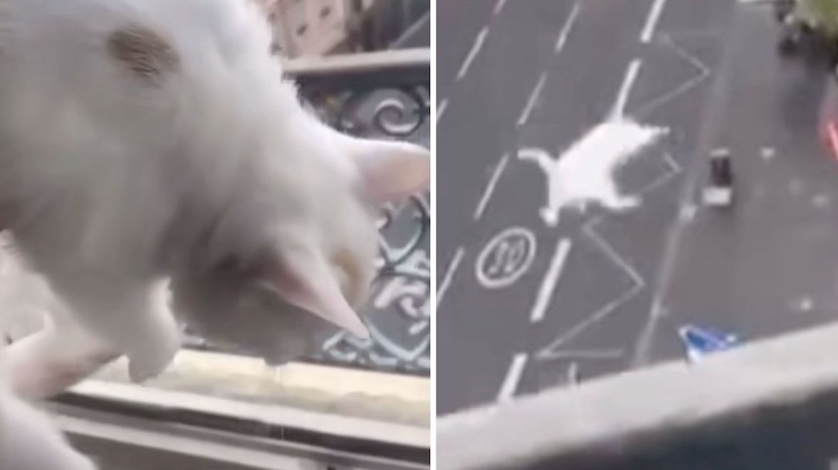 Rien ne permet de déterminer si ce chat jeté du haut d'un immeuble a survécu./ Capture d'écran réseaux sociaux