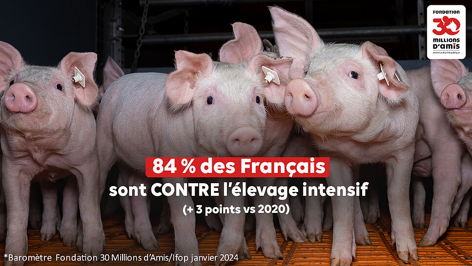 « En facilitant l’installation d’élevages intensifs, ce décret va à contresens des demandes des citoyens en matière de respect du bien-être animal […] », s’indigne de son côté l’association Welfarm. La Fondation 30 Millions d’Amis rappelle par ailleurs que 84 % des Français reste très majoritairement opposés au modèle intensif selon le dernier baromètre 2024 [« Les Français et le bien-être animal » – Fondation 30 Millions d’Amis / IFOP, 2024].